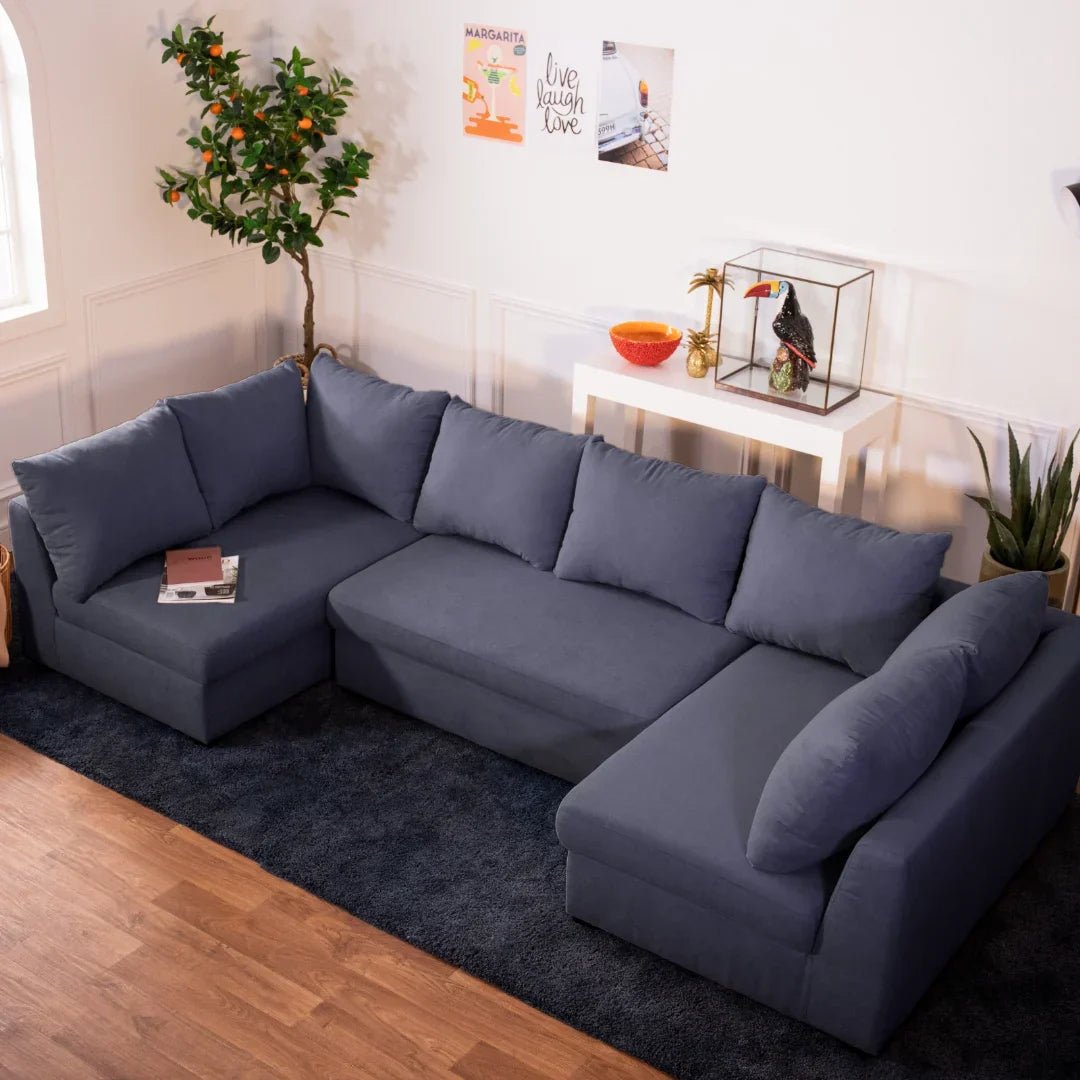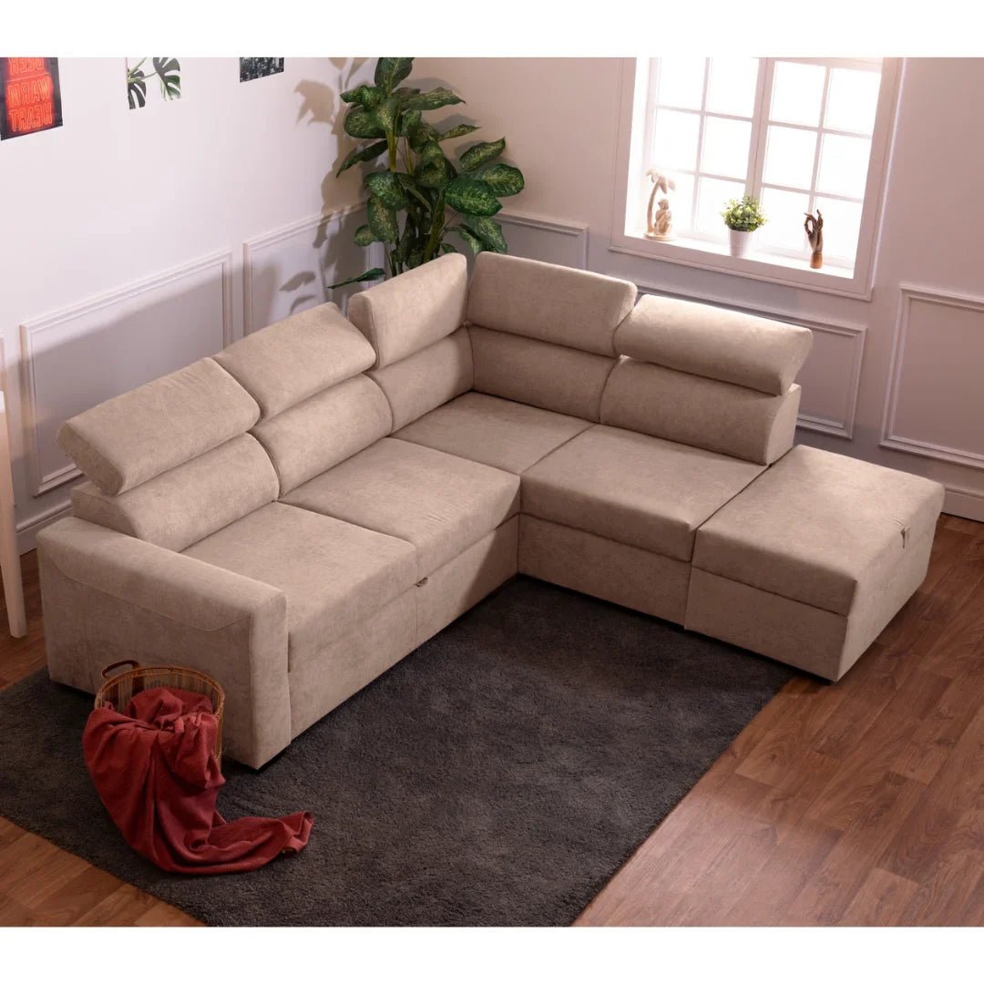 Sofá-cama de canto de 4 lugares com puff e arrumação extra – Zurie