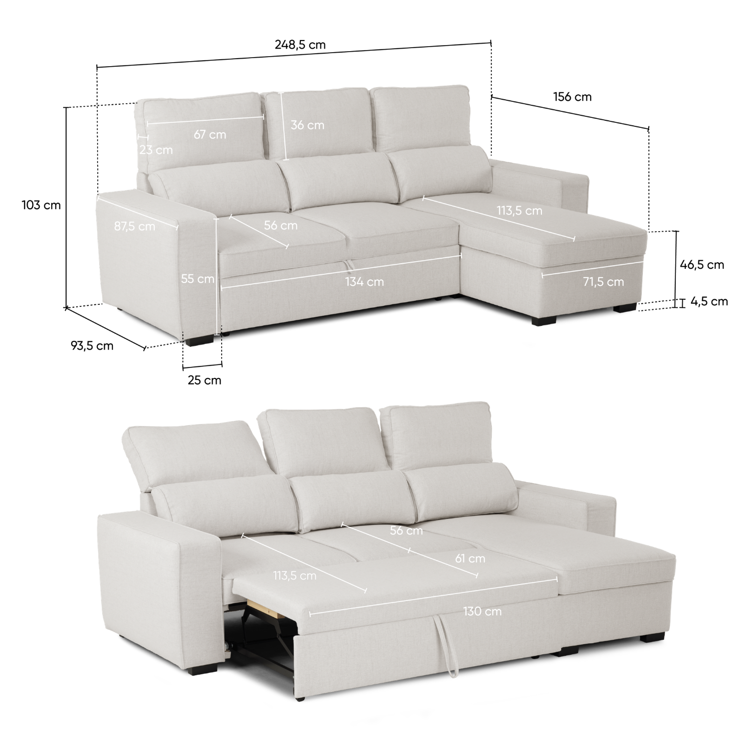 Sofá - Cama 4 Lugares com Chaise Longue Reversível e Arrumação - HarperC1536BFSRG8242_C24