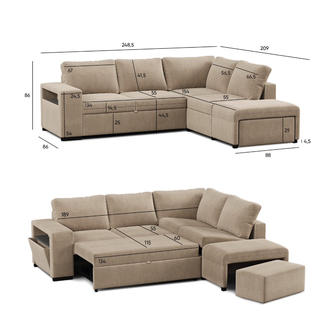4-seater corner sofa bed with pouf and extra storage – Zurie
