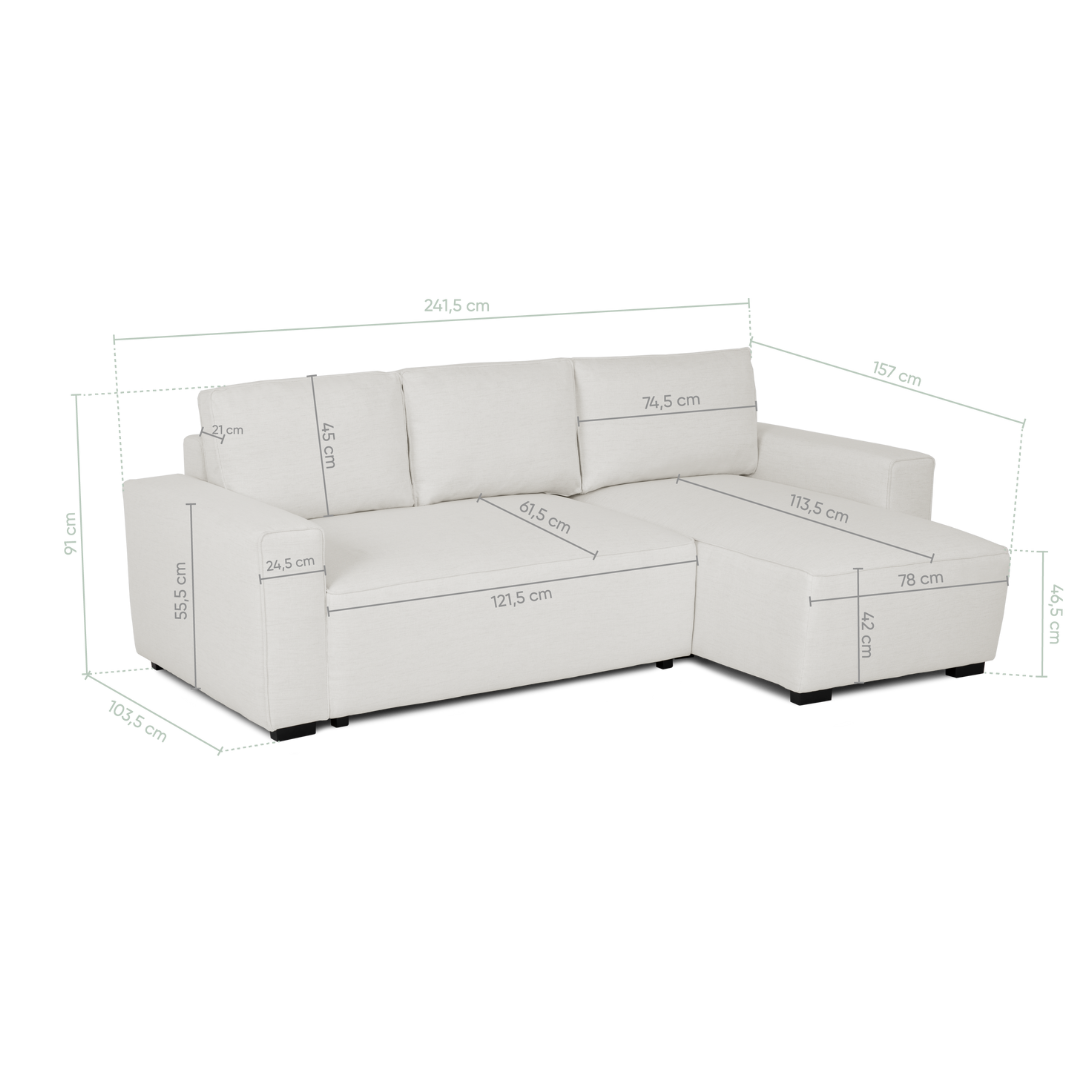 Sofá Cama 4 Plazas con Chaise Longue Reversible y almacenamiento Beige