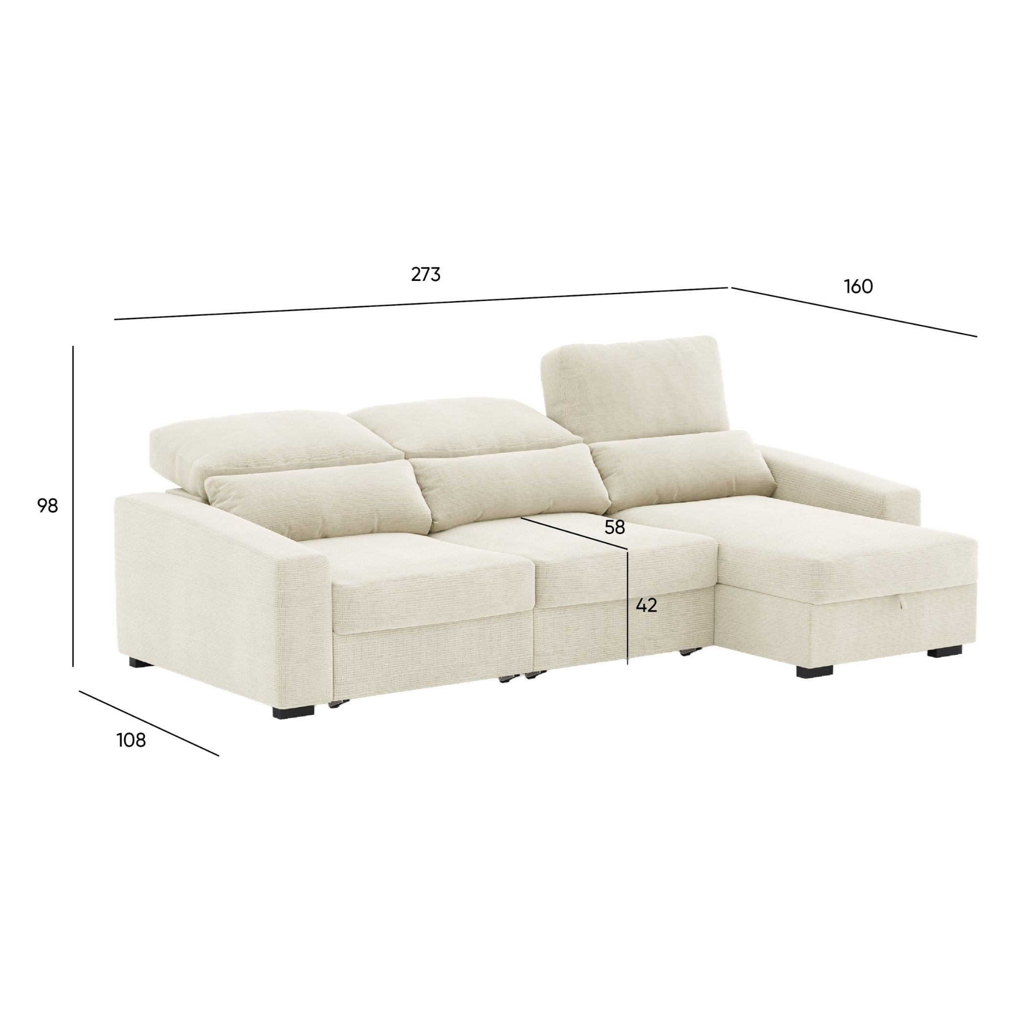 • Larghezza totale: 273 cm