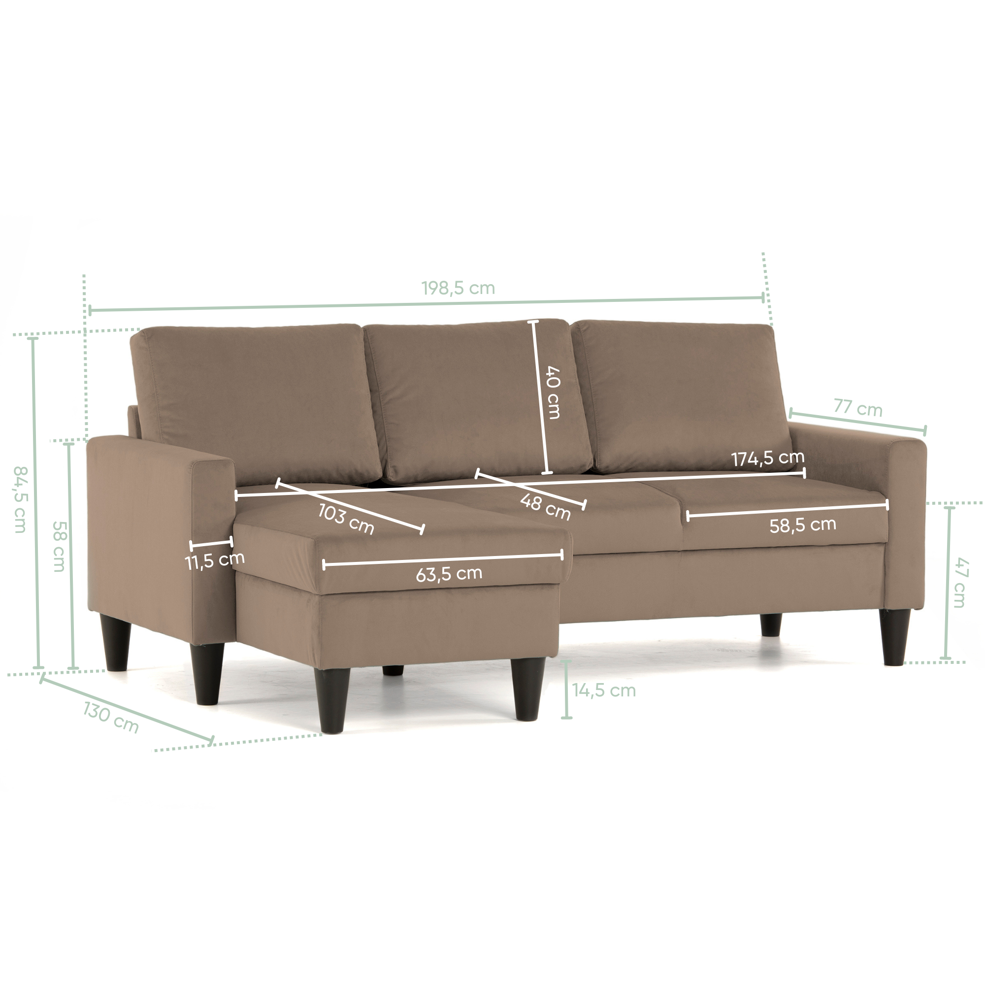 Sofá de 3 lugares com chaise longue reversível e pés vintage – AngelC710BSSRBG3840_C24