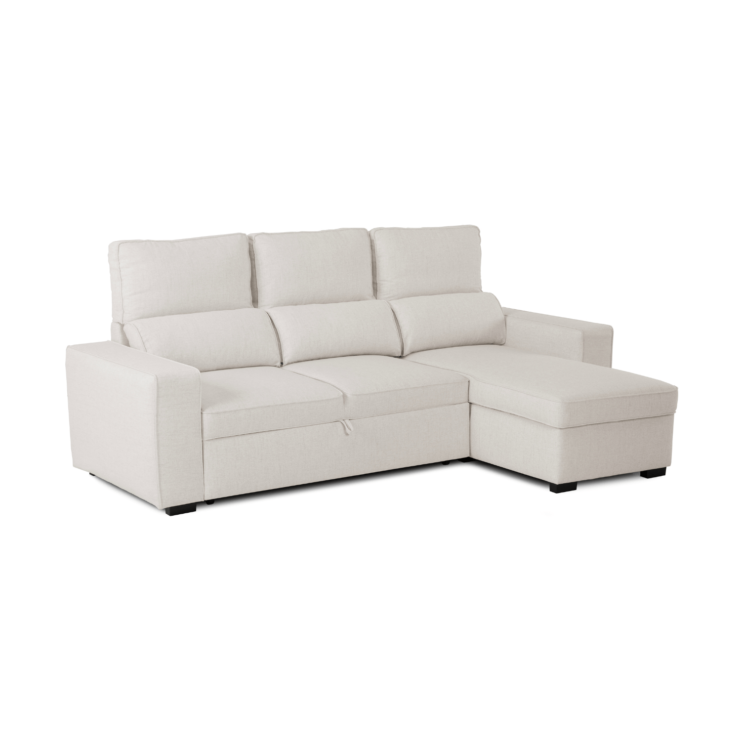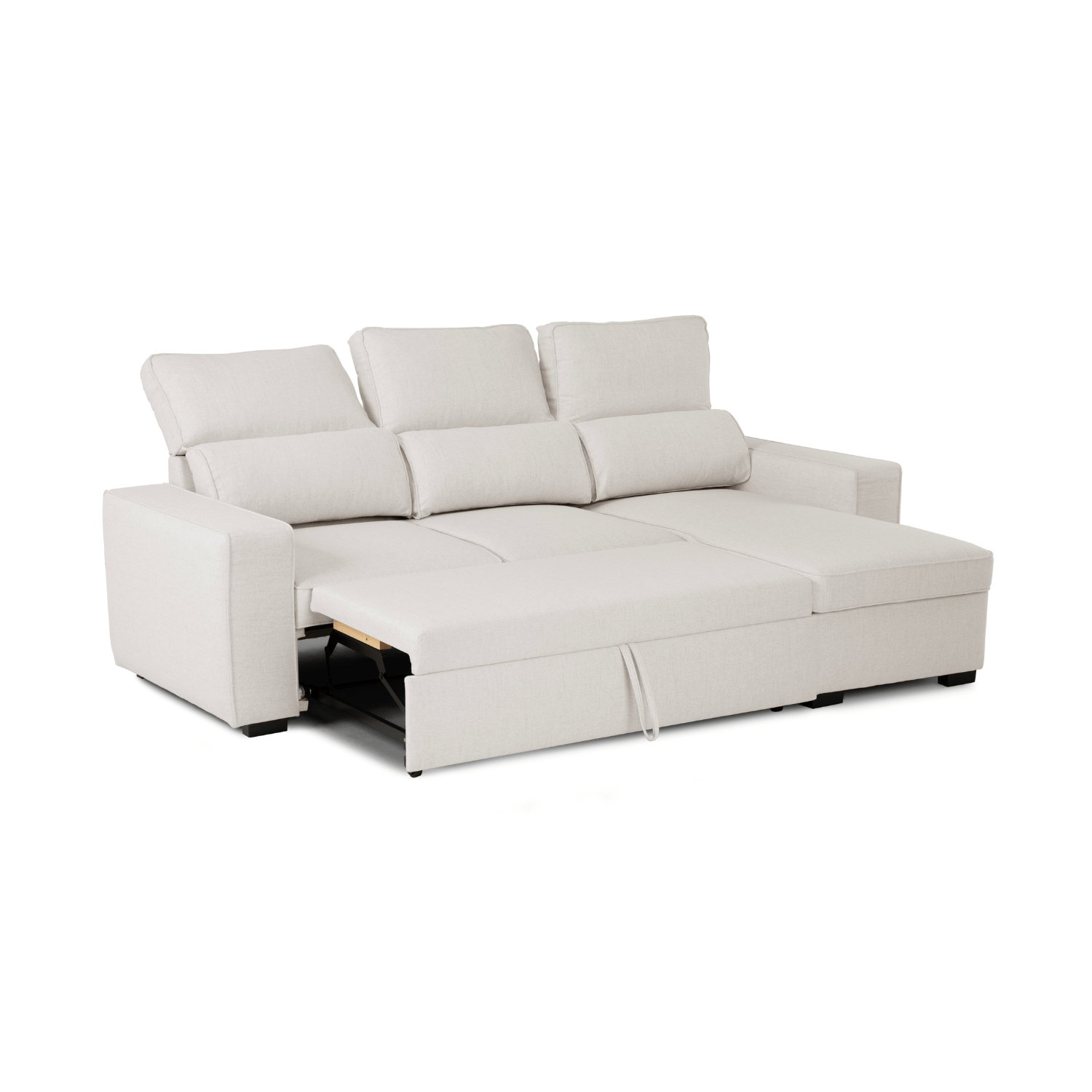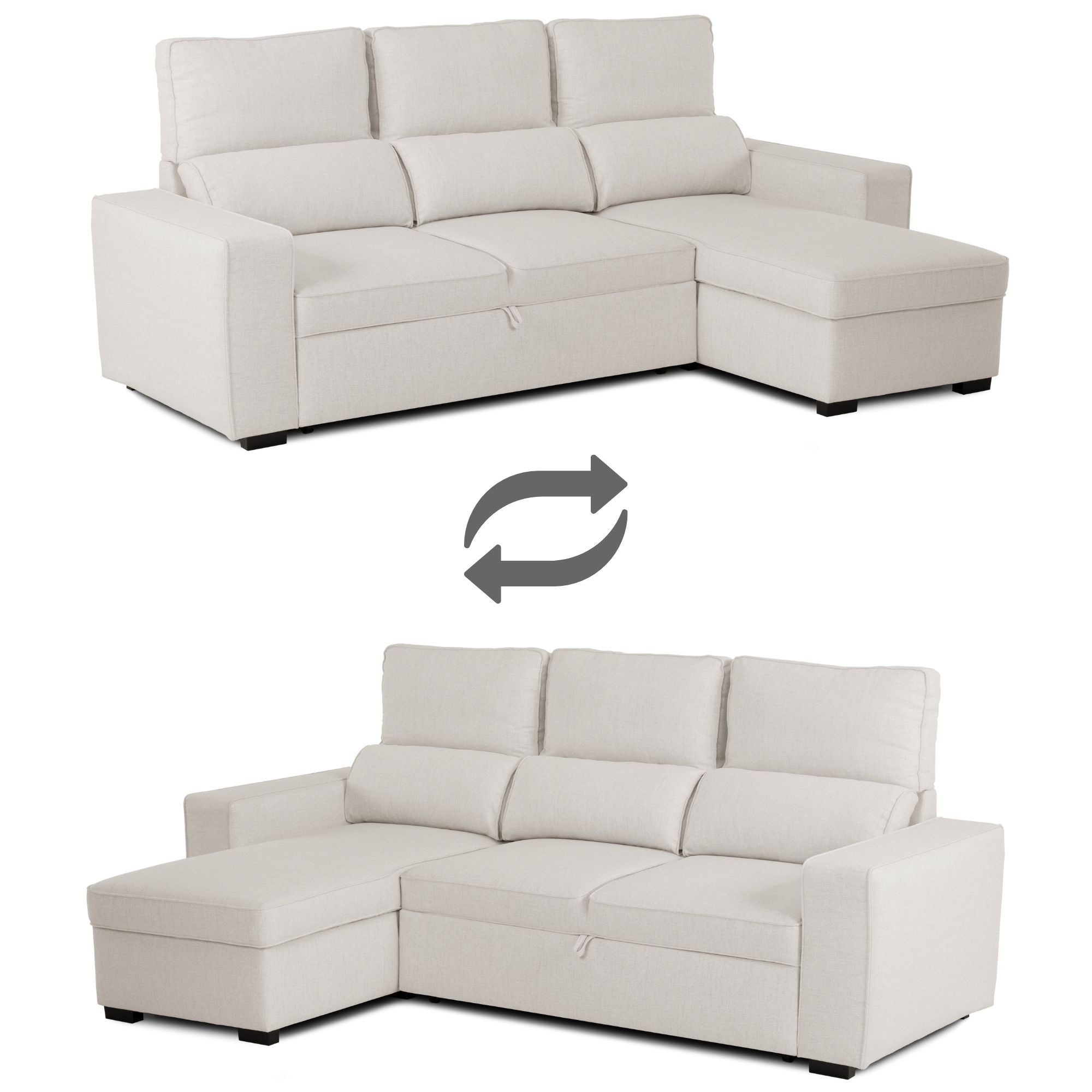 • Divano Letto 4 Posti con Chaise Longue Reversibile, Testiere Regolabili e Contenitore Beige