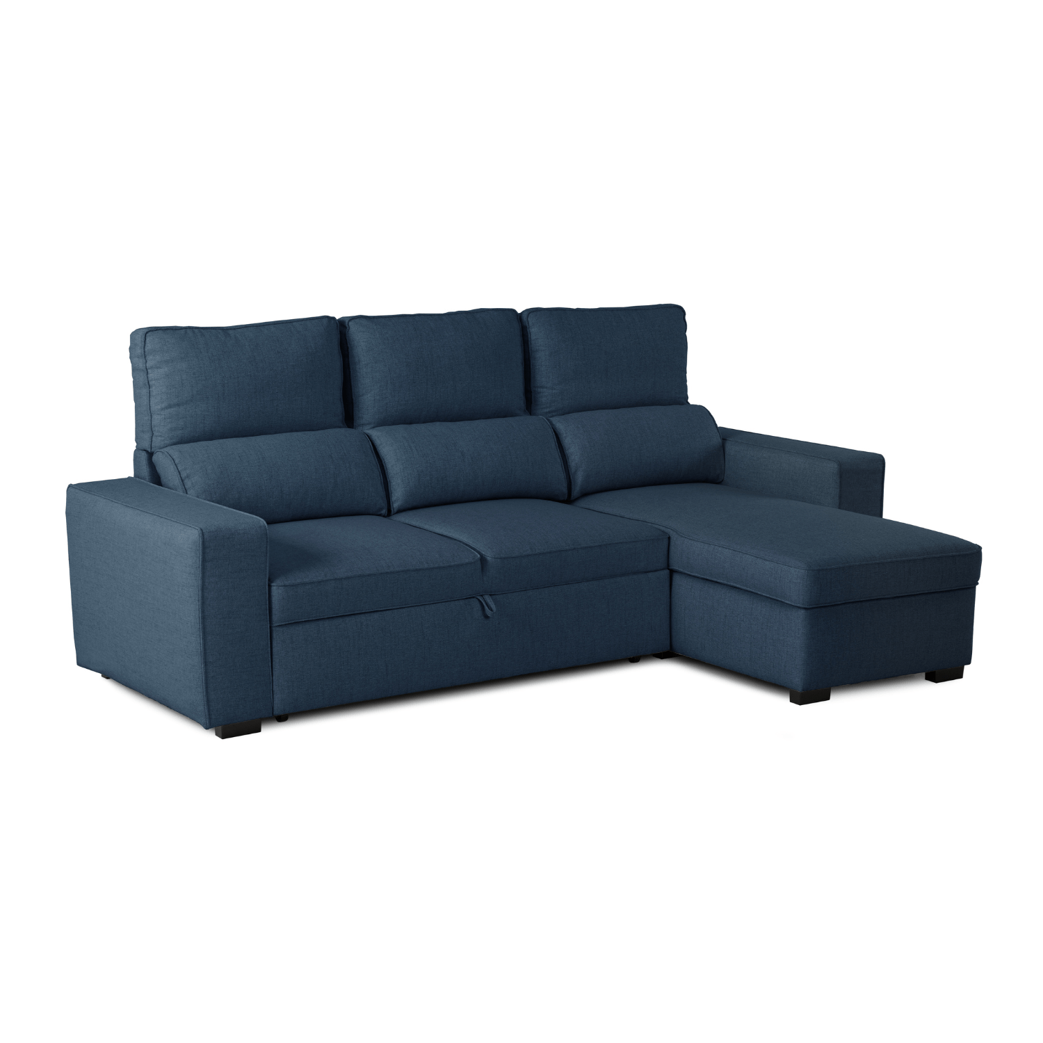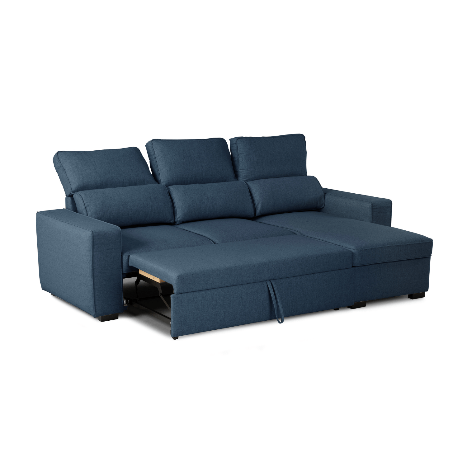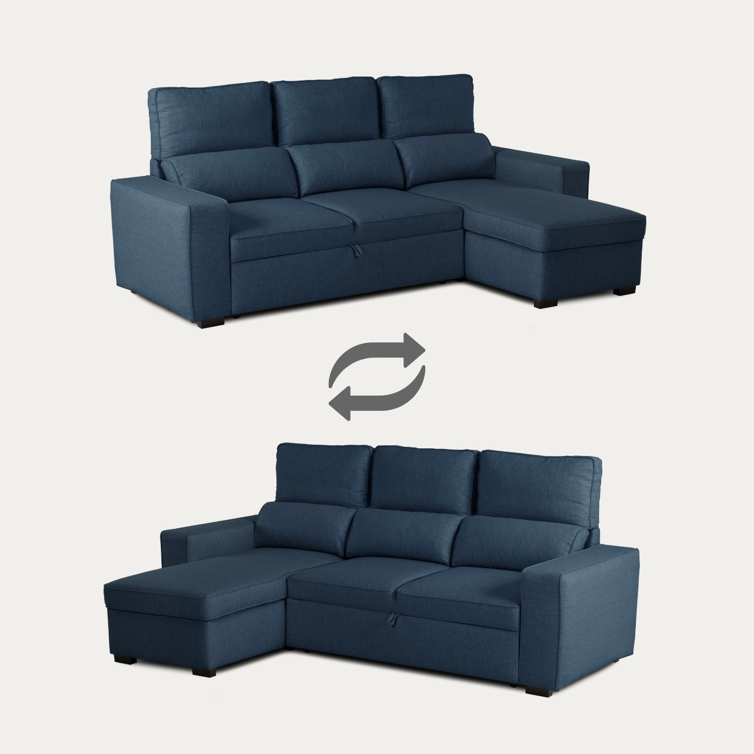 • Divano Letto 4 Posti con Chaise Longue Reversibile, Testiere Regolabili e Contenitore Blu