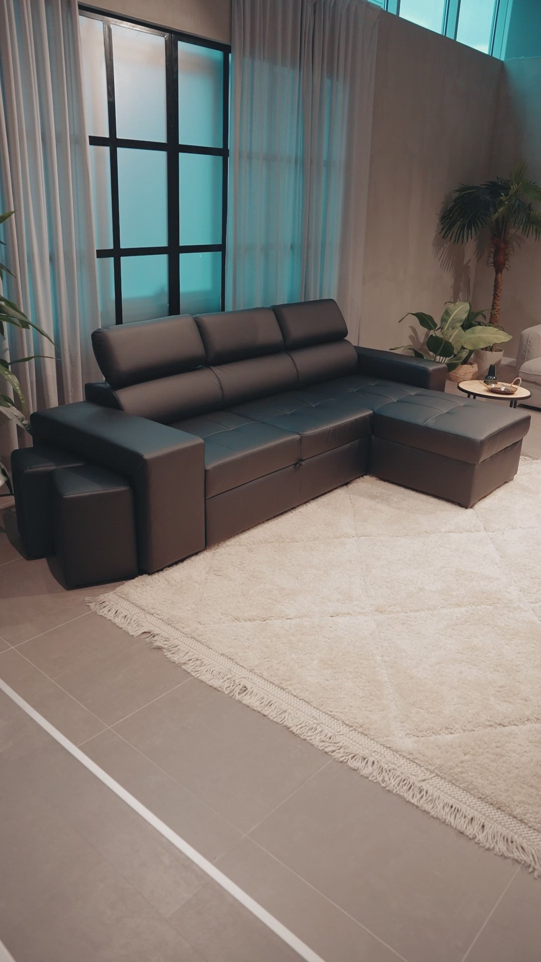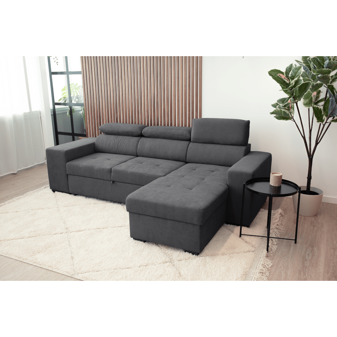 Sofá-Cama 3 Lugares com Chaise Longue Reversível - Leah