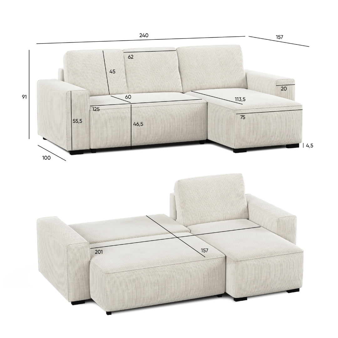 Sofá-Cama 4 Lugares com Chaise Longue Reversível - Jade