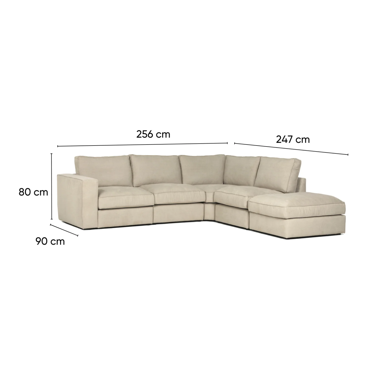 O sofá Taylor é composto por 5 módulos que são fáceis de reorganizar, para que possa montá-lo da forma que melhor se adapte ao seu espaço e às suas necessidades.